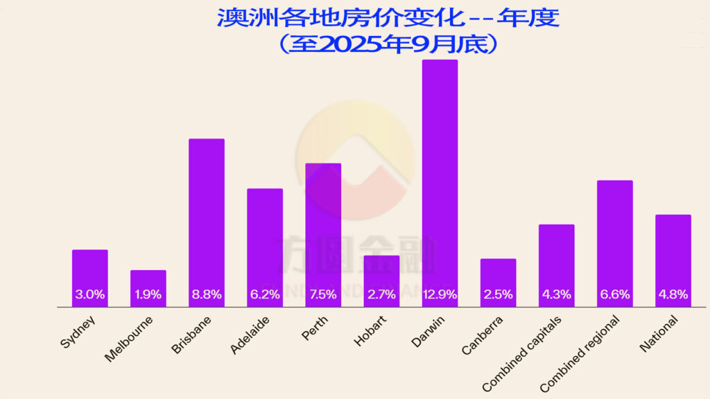- 布里斯班:季度上涨 3.5%,且连续7个季度单位房(公寓)涨幅超过独立屋,主要受供应紧缺推动。