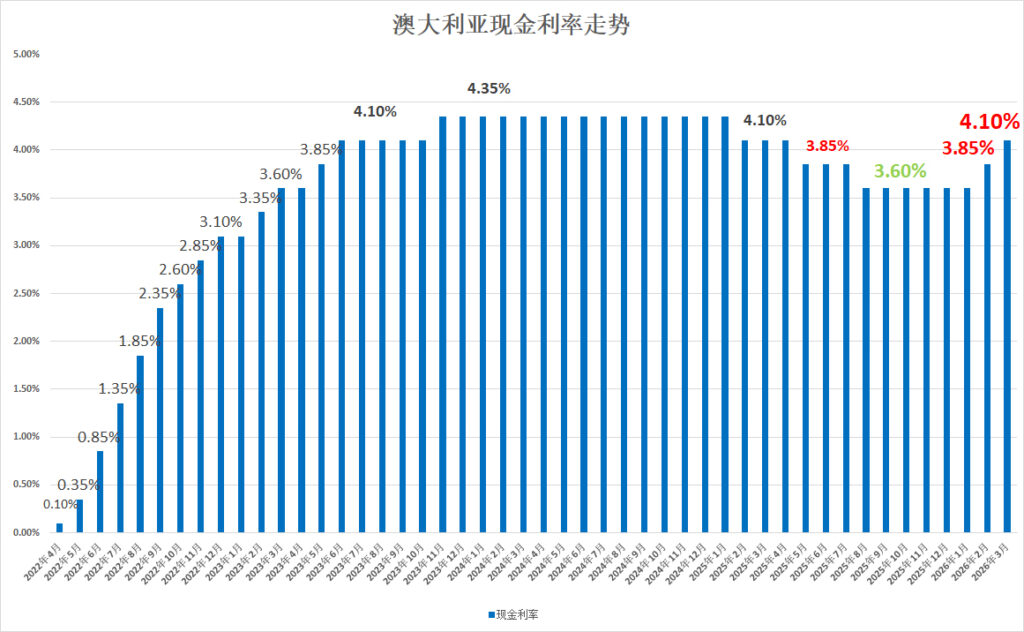 澳大利亚储备银行(RBA)在周二(3月17日)决定将官方现金利率上调25个基点至 4.10%!这是今年的第二次加息,旨在抑制油价飙升背景下再次抬头的通胀。此次决议RBA董事会以五票赞成、四票反对的结果惊险通过。